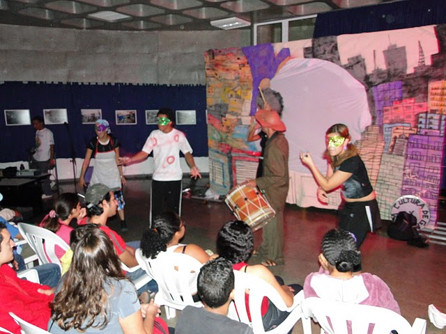 Aconteceu no dia 15 de Maio no espaço de integração do CEU Parelheiros o lançamento do Ponto de Cultura da Comunidade. O evento esteve interligado com a Virada Cultural da de São Paulo na qual durante 24 horas aconteceram diversas apresentações culturais, sendo a maioria concentrada na região central da cidade. Como tema da nossa ação, trouxemos uma reflexão em torno de como as políticas públicas de cultura são pensadas na cidade, beneficiando quase sempre, quem têm melhor acesso aos pontos centrais. Nossa região está situada a pelo menos 30 km do centro urbano, por isso estamos na margem. Colocamos em discussão o valor que é dado para o que é produzido nas comunidades
