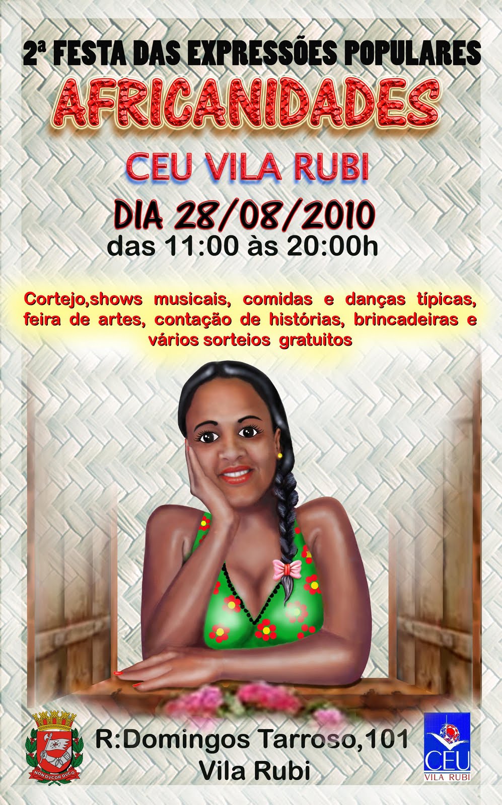 O Ponto de Cultura da Comunidade levará no dia 28/08 uma apresentação musical de forró pé de serra com a banda Vila do Sossego na Festa das Expressões, realizada pelo Núcleo de cultura do CEU Vila Rubi em parceria com a CIA Trivollin de expressões populares. O evento, em sua segunda edição trás como tema AFRICANIDADES trazendo diversas atividades ligadas a cultura popular produzida localmente e na cidade de São Paulo.